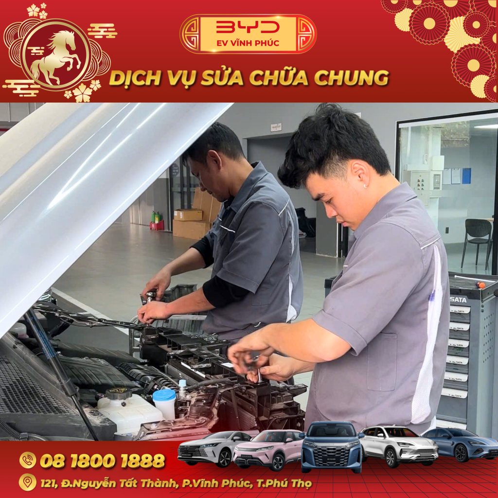 Dù là xe điện BYD hay các dòng xe khác, xưởng dịch vụ BYD Vĩnh Phúc đều tiếp nhận chăm sóc, bảo dưỡng và sửa chữa với quy trình minh bạch, kỹ thuật viên chuyên môn cao và trang thiết bị hiện đại.
